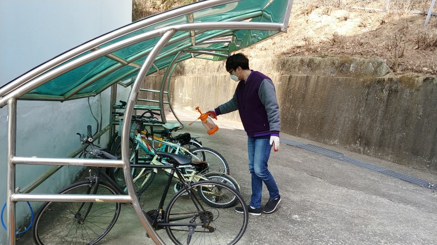 매일 자체적으로 소독을 실시하고 있으며 또한 강릉시 자원봉사센터 및 주민센터의 지원을 받아 소독을 하고 있습니다.