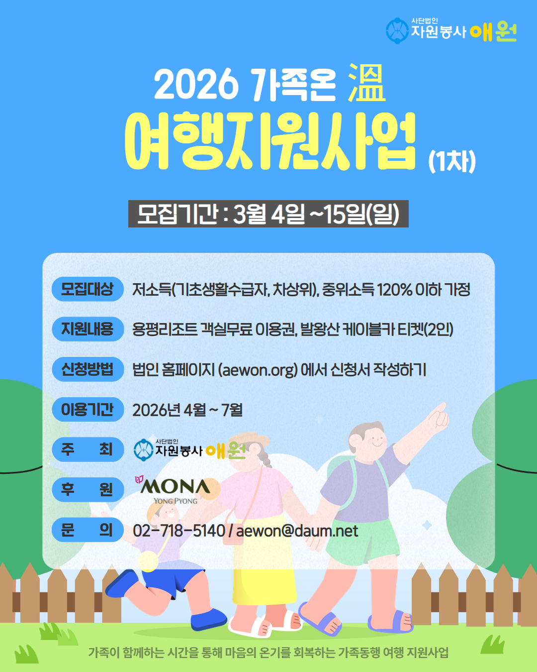 [자원봉사애원] 2026년 모나용평 숙박권 지원사업 <가족온(溫) 여행지원사업(1차)>